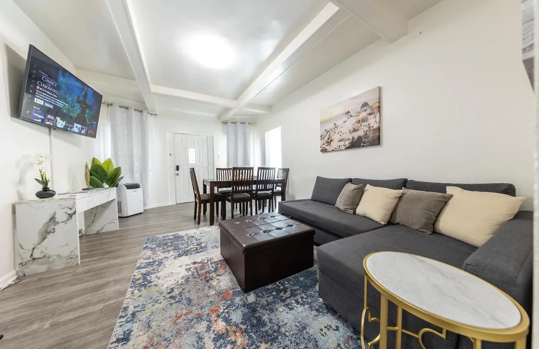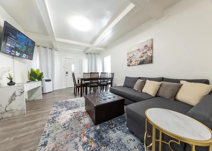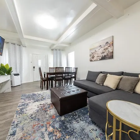 8 Beds Home With 4 Car Parking Space - Near Dtlb é um apartamento à beira-mar localizado em Long Beach, 25 minutos de distância de CityPlace Long Beach. Este apartamento à beira-mar está equipado com 2 quartos, cofre pessoal, sofá e uma mesa de trabalho, e cozinha totalmente equipada com microondas, chaleira elétrica e frigorífico.